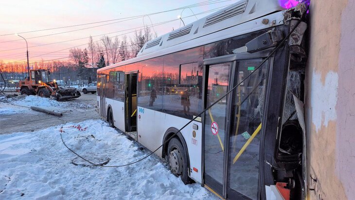 Автобус врезался в дом в Великом Новгороде