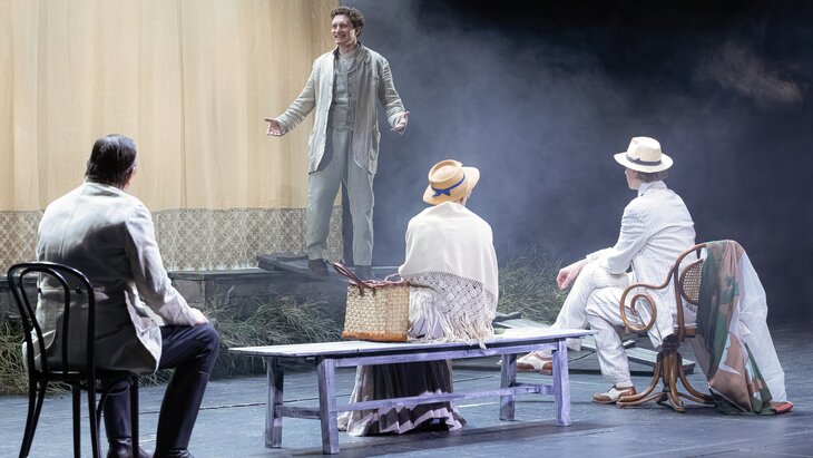 Данная постановка представляет собой новую интерпретацию классического произведения Антона Чехова. В спектакле задействованы Юлия Высоцкая, Арсений Васильевых, Денис Зайнуллин, Виктор Гордеев, Владимир Горюшин и другие актеры. Следующий показ назначен на 24 апреля, билеты доступны на платформе "Мосбилет".