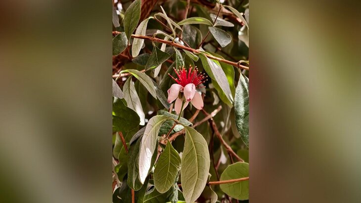 Фейхоа селлова расцвела в оранжерее "Аптекарского огорода"